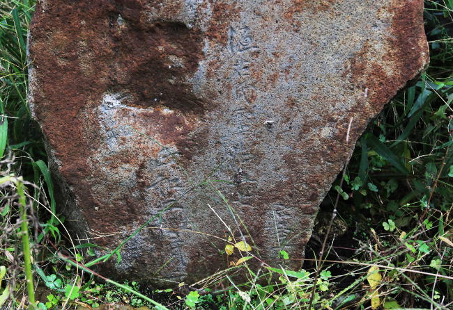 | 地元産 「兼平石」の石面を研磨し、中央に金剛界大日如来の種子「バン」を薬研彫する。紀年銘・願文は刻まれていない。 | ||
