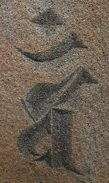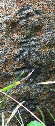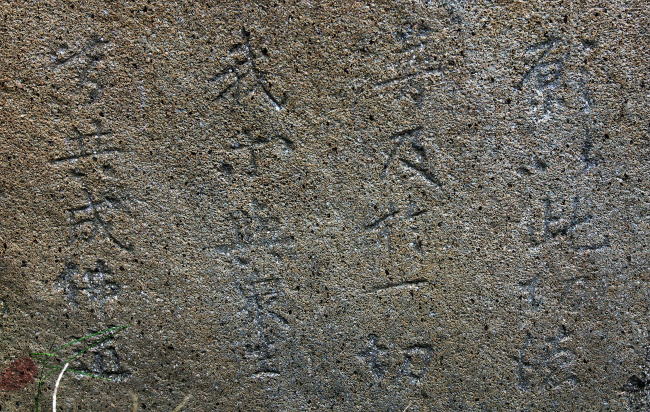 | 三角形の石面、上方に格調高く金剛界大日如来の種子「バン」を薬研彫し、下方に円覚経に出る偈(げ)と願文・紀年銘を刻む。 | ||