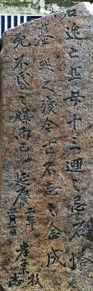 刻銘全文:「右迎亡悲母十三廻之忌石塔、口其起之残今古不忘之念成、口死不昏之媒而已