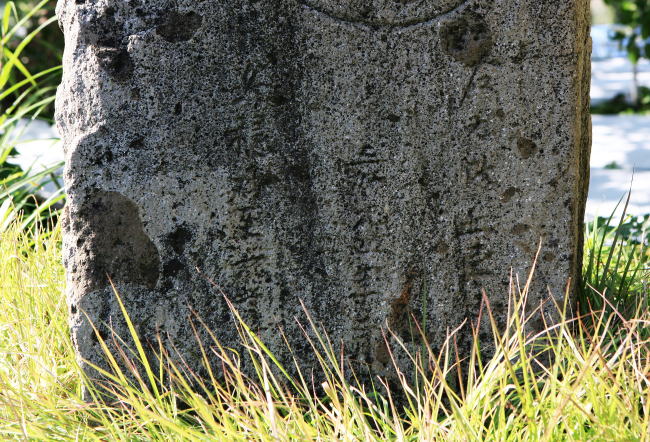 開敷華王種子石塔婆 (市指定文化財、鎌倉時代後期 嘉元四年 1306年、石英安山岩、高さ 87Cm 幅 55Cm 厚さ 31Cm)