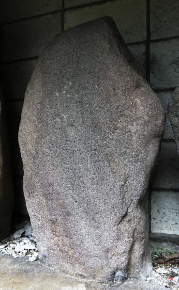 三世寺 金剛界大日種子自然石塔婆(市指定文化財、鎌倉時代後期 元応二年 1320年、安山岩、高さ 139Cm 幅 69Cm)