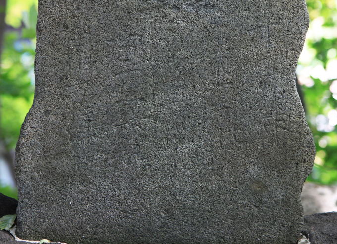 | 刻銘:「厂(暦)應三(1340)六廾、敬白」 | 下方の刻銘は、彫りが薄く、摩耗もあり、わかりにくい。 |