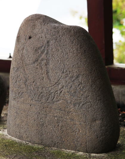 北金ヶ沢(きたかねがさわ)観音種子自然石塔婆 (町指定史跡、南北朝時代、安山岩、高さ 53Cm 幅 52Cm)