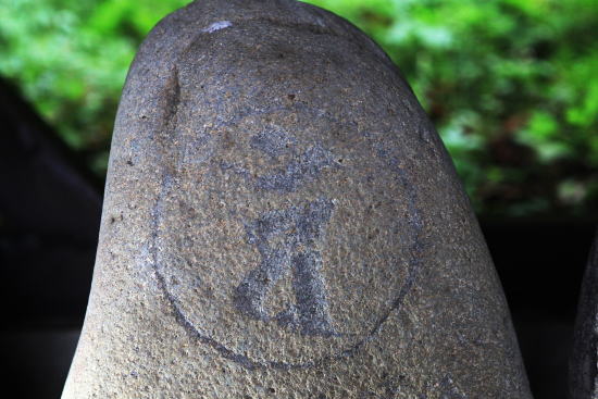 頭部山形に似た自然石を使用、月輪内に金剛界大日如来の種子「バン」を大きく刻む。