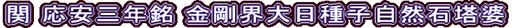 関 金剛界大日種子自然石塔婆(県指定史跡、南北朝時代中期 応安三年 1370年、安山岩、高さ 70Cm 幅 50Cm)