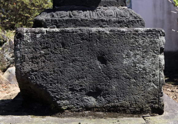 基礎は上端に子持ちの単弁反花座をつくり、側面三面に刻銘を刻む