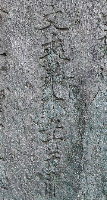 | 板碑は厚さが9Cmもあり、蓮座も深く彫ってある。 | 刻銘:「文永第十年(1273)癸酉」 |