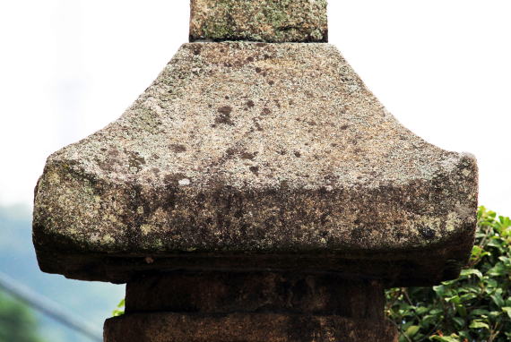 | 境内東端、越智式宝篋印塔の横に立つ浄土寺第一の石造遺品 | 首部、中央に帯状の高欄(勾欄)が外に出張っている。 |