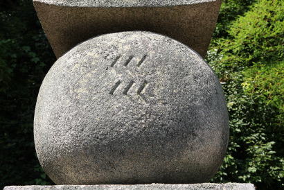 | 石造五輪塔(市指定史跡、江戸時代初期、高さ300Cm) | 水輪(中央に水の文字が刻まれている) |
