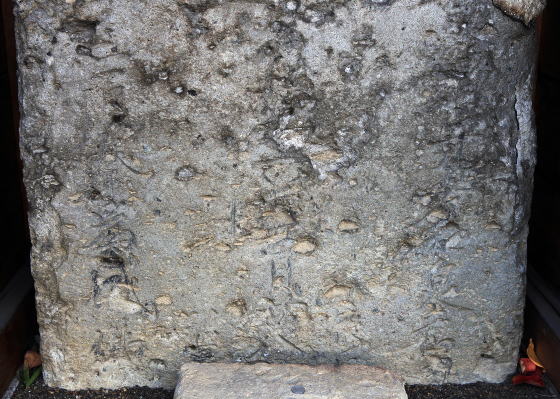 | 板碑、向かって左側の刻銘 | 板碑、向かって右側の刻銘 |