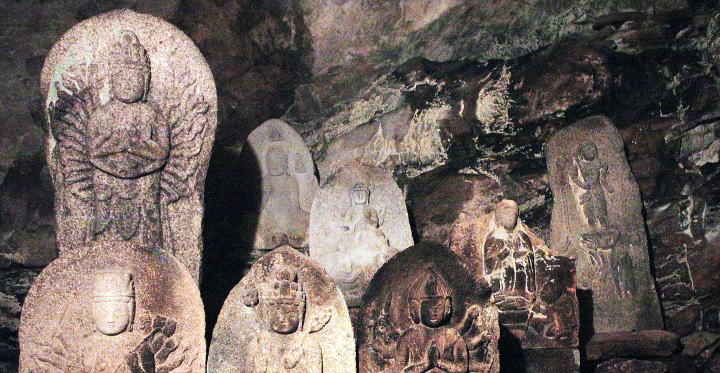 鷲原寺 奥院(岩屋観音)石仏群(県指定文化財、鎌倉時代後期〜南北朝時代前期)