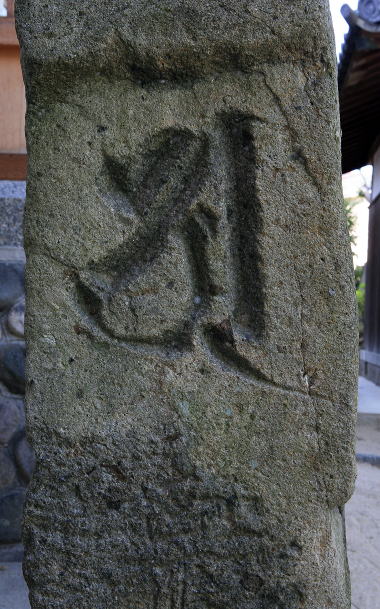 | 身部の上部に、大きく胎蔵界大日如来の種子「ア」を薬研彫りする | 刻銘:「正応三年(1290)庚刁二月廿日、孝子ホ(等)、敬白」 |