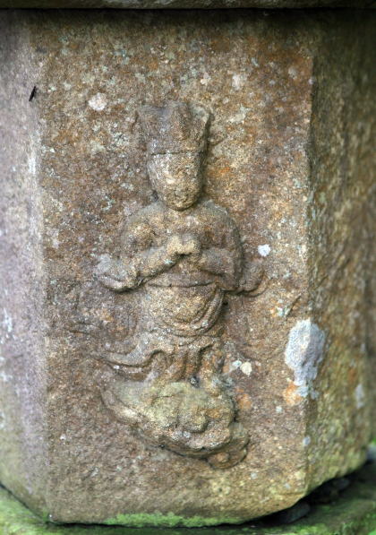 薩摩塔は、九州の西側に偏在する独特のもので四角型と六角型のものがある。本塔は六角型で、須弥壇部に四天王像、壺型の塔身に如来坐像が刻まれている。