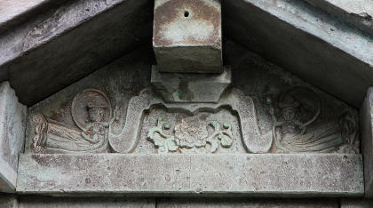 | 石廟側面、上部の蟇股と天女の彫刻 | ||