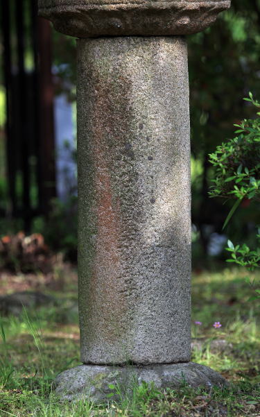 | 竿は円柱で、節はない。正面・背面にわたり、寄進者の名前と桃山時代 中頃 天正十二年(1584)の紀年銘が刻まれている | ||