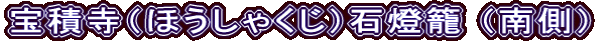 刻銘:「奉寄進、宝積寺石燈籠、天正十二年申年(1584)九月二十二日、施主井尻六良左金吾、紀則定、法名徳叟宗陽居士」