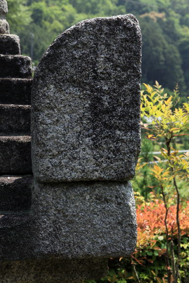 基礎は欠失し、上端の二段の段型のみ残っている。下に、切石で作った二段の基壇がある