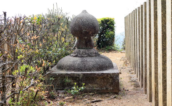 金堂の裏から、多宝塔の東の山道を約600m歩き山頂に出る。文覚上人墓と後深草天皇皇子、性仁法親王墓がある