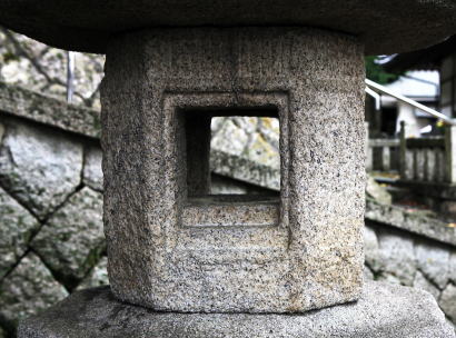 | 石燈籠は、寺の南側 桂林寺の鎮守 八幡神社境内に立っている。 | 火袋、火口四面で、隅を大面取式に残し壁面四面とする。 |