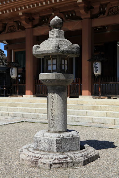 | 現在 燈籠台石は、本堂前向かって右側の江戸時代前期 延宝三年(1675)の銘がある六角型石燈籠に流用されている | ||