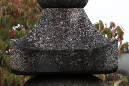 | 五輪塔は、境内の奥(東南端)に安置されている | 火輪、軒口厚く両端で強く反っている |