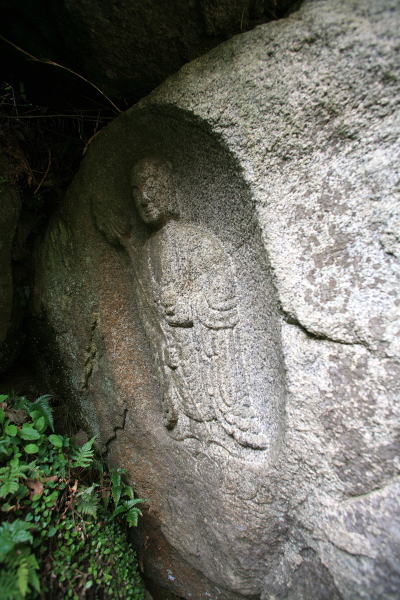 唐臼の壺 地蔵磨崖仏 (南北朝時代前期 康永二年 1343年、花崗岩、高さ 103Cm 像高 78Cm)