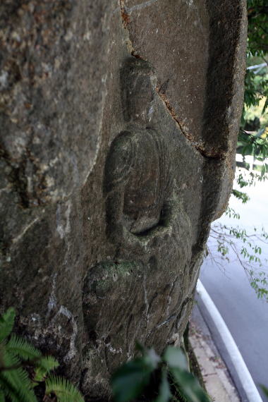 | 岩面を隅切のある長方形に彫り沈め、像高76Cmの定印阿弥陀坐像半肉彫りする。大きな笠石をもつため状態はよい。 | ||