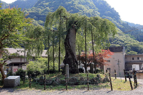 推定樹齢 約350年の枝垂れ桜で、高さ 約7.7m、胸高直径 約 1.2mで、シーズンには見事な花を咲かすのだろう