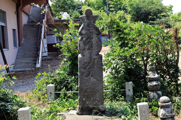賢明寺 石造板五輪塔(県指定文化財、鎌倉時代中期 弘安八年 1285年、砂岩、高さ 168Cm)