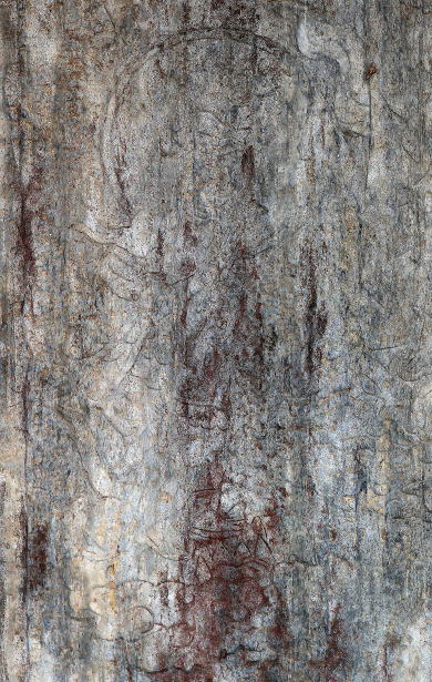 | 身部中央に三重円の頭光を負い、雲の上に立つ阿弥陀如来、下方左右に一重円の頭光を負い、流れる雲に乗る観音・勢至の両脇侍を刻む。 | ||