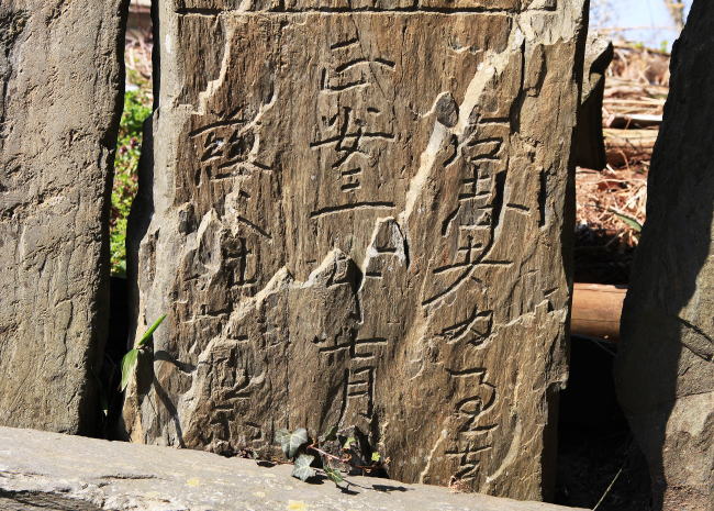 中央に、「弘安三年(1301)七月日」、その両側に「右志者為過去、慈父往生極楽也」と刻んでいる。