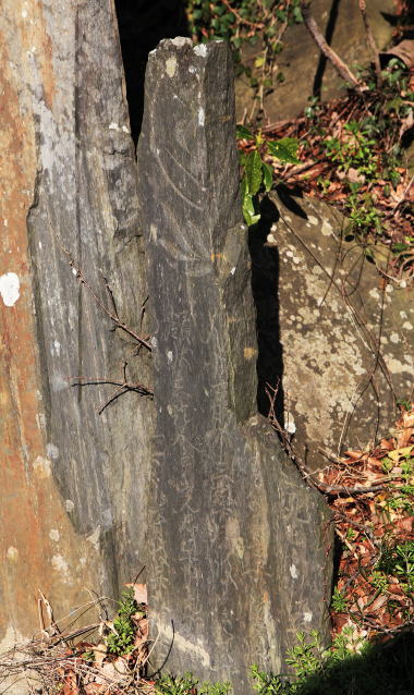一皇子宮(いちおうじぐう)種子石塔婆 (推定:鎌倉時代、粘板岩、高さ 176Cm 幅 42Cm 厚さ 21Cm)