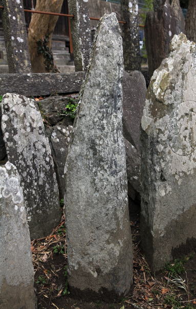 慈恩院(じおんいん)観音種子石塔婆 (室町時代前期 応永三年 1396年、粘板岩、高さ 118Cm 幅 41.5Cm 厚さ 14Cm)