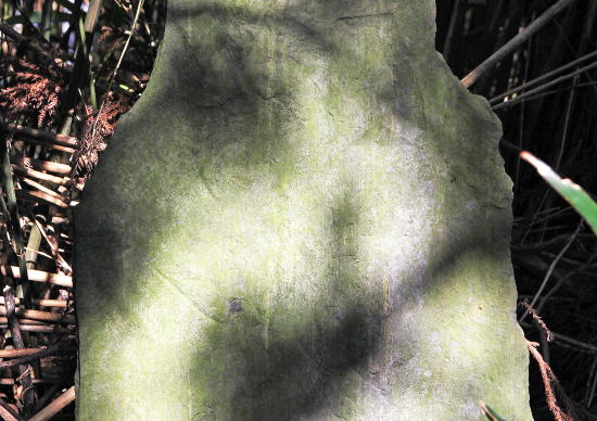 | 北境(きたざかい)不動種子石塔婆(鎌倉時代中期 弘安三年 1280年、粘板岩、高さ 153Cm 幅 36Cm 厚さ 16Cm) |