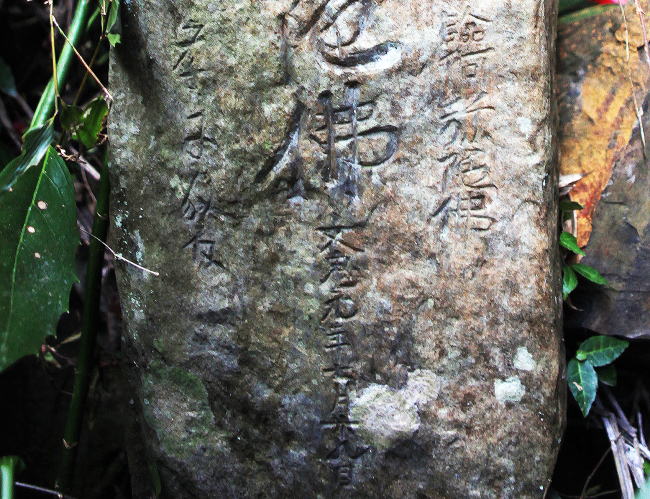 石塔婆は、中央に大きく「南無阿弥陀仏」の六字名号、その下に「文鬼元年七月廿九日」の私年号、下方の左右に「臨阿弥陀仏、孝子敬白」と刻む。