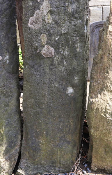 多福院(たふくいん)山門脇 石塔婆群 後列部分 (市指定文化財、南北朝~室町時代前期、粘板岩)