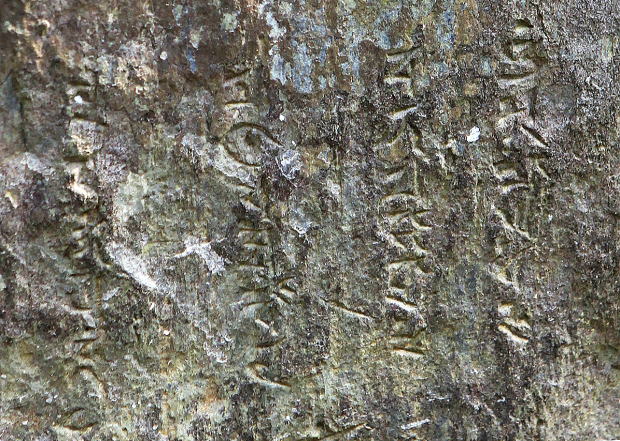 通常、二行か四行で刻まれているが、ここでは五行で刻まれている。