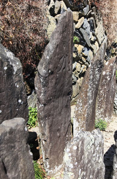 | 高木観音堂 地蔵種子石塔婆(南北朝時代前期 観応三年 1352年、粘板岩、高さ 92Cm 幅 27Cm 厚さ 10Cm) |