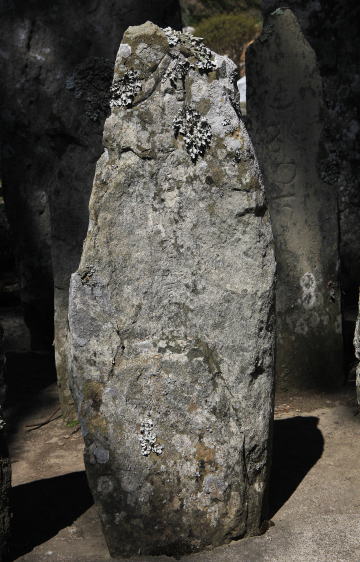 石塔婆群、最前列に立つ。身部は上方に観音菩薩の種子「サ」、下方に紀年銘のみを刻む。