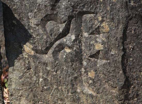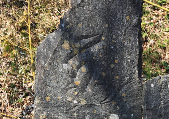 地蔵菩薩の種子「カ」を蓮座上月輪内に薬研彫する。