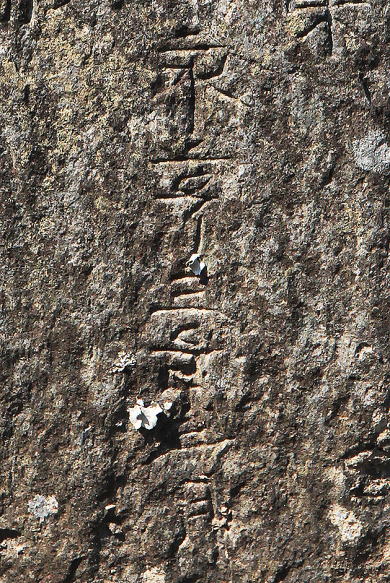 刻銘は、上方に四行「十方仏土中、唯有一乗法、無二亦無三、除仏方便説」の法華経 方便品に出る偈(げ)、
