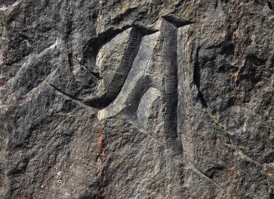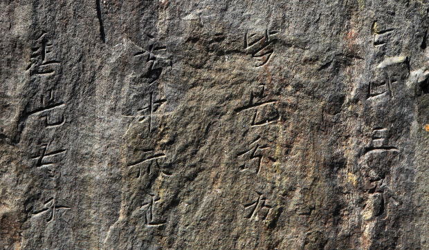 地蔵菩薩の種子「カ」を月輪内に薬研彫する。