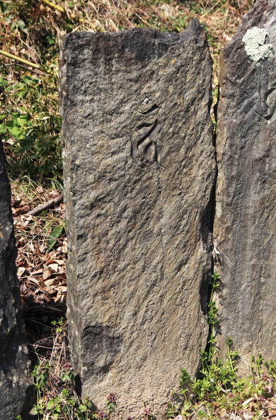 | 山口家 阿閦種子石塔婆 (室町時代前期 応永二十二年 1415年、粘板岩、高さ 122Cm 幅 40Cm 厚さ 6Cm) |