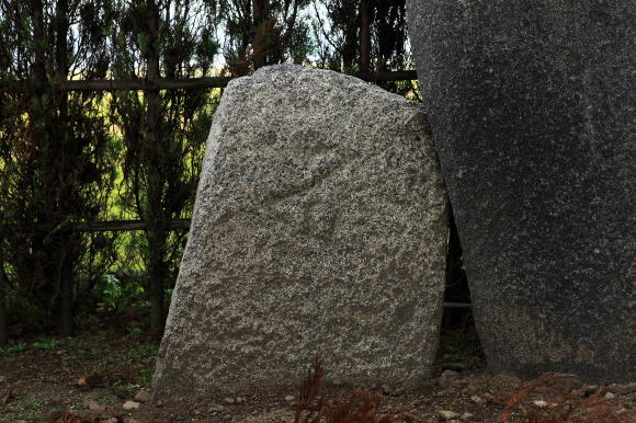 | 文保二年(1318)石塔婆の向かって左側に立っている。正面上部に薬師か釈迦の種子が刻まれている。元亨二年(1322)の紀年銘がある | ||