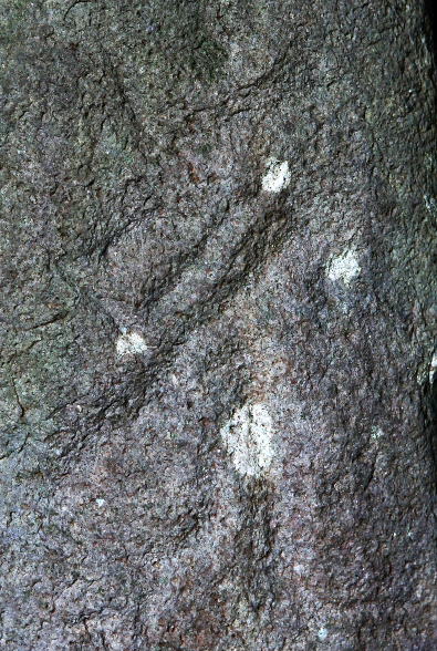 | 名取川の河原石を利用、碑面中央に大きく金剛界大日種子「バン」、下方に「弘安四年(1281)八月」の紀年銘を刻む。 | ||