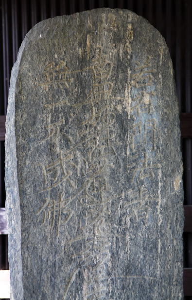 | 本源寺(ほんげんじ)応永十八年銘 題目石塔婆 (室町時代前期 応永十八年 1411年、粘板岩) |