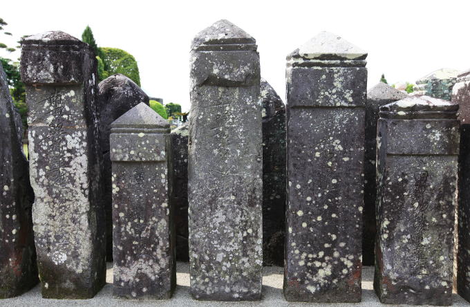 定善寺(じょうぜんじ)題目板碑群 四十基 (室町時代後期~江戸時代前期、凝灰岩)