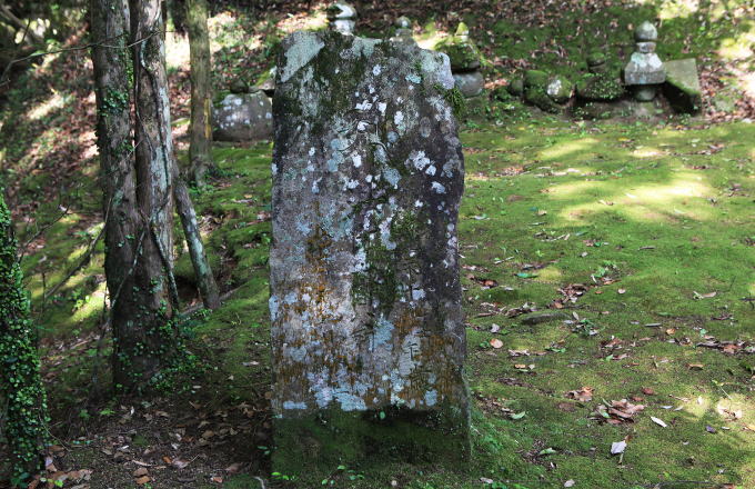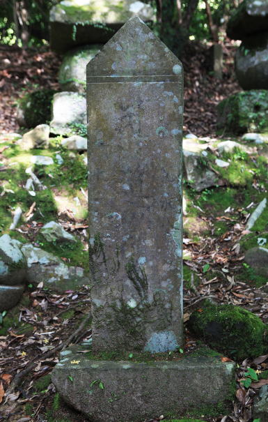 頭部山形、身部は分厚く、墓石形式。正面の下部には、寛永八年(1631)の逝去日と寛永十年(1633)の造立日が刻まれている。