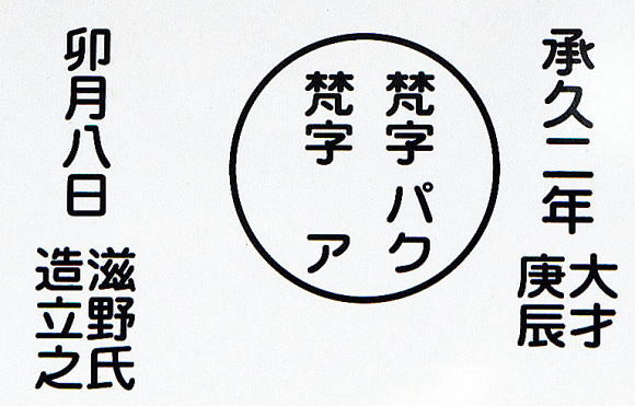 塔身は、正面の二仏種子を挟んで、左右に「承久二年(1220)、大才、庚辰」、