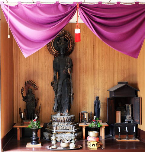 平成20年7月に行った時は、道路横(写真、最上)に立っていたが、今回(平成22年8月)はお堂の前に移設してあった